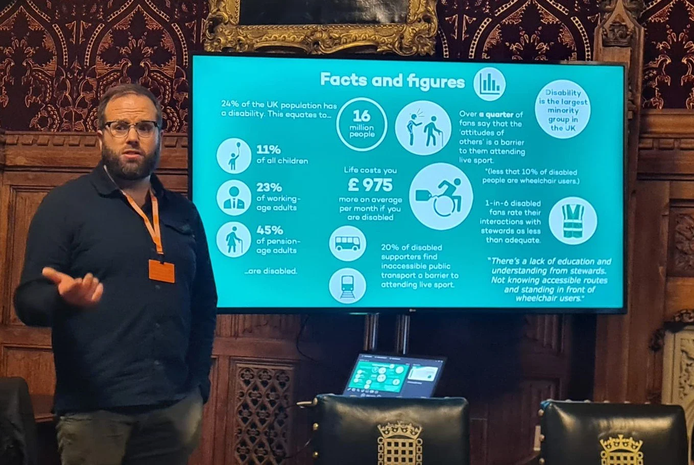 So today, I ask everyone in this room to engage fully to contribute, to challenge, and to be bold. Because when standards improve, communities are reflected in the stands, families can attend together, and disabled supporters can unite behind their team like anyone else.